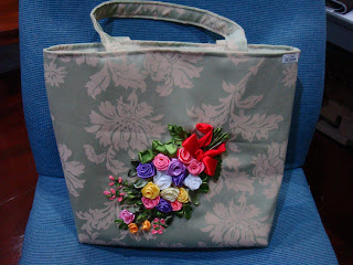 This embroidery was done last Friday, but wa sewn into a bag late yesterday evening too. I was very determined to complete it as this will be presented to someone close to the family. It will be flown over to her this Friday. InsyaAllah.